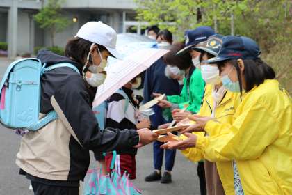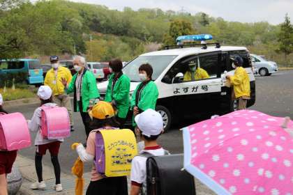 よすが号来校 公開日 2022/04/14 更新日 2022/04/14 お知らせ 地域の交通パトロールのシンボルともいえる「よすが号」が来校し、下校の見守りをしていただきましÝた。 昨年度から、本校の来校者に配付している「缶バッチ」も贈呈することができました。石畳小学校の交通事故「0」の継続に向けて、地域をあげてのご協力に感謝します。