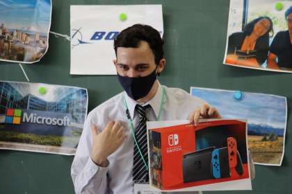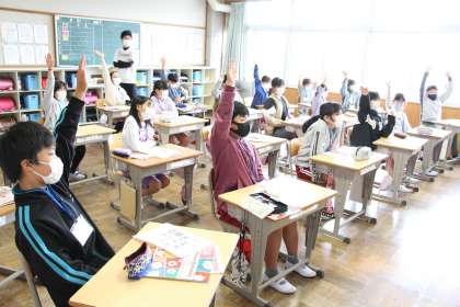 5年生外国語 公開日 2022/04/15 更新日 2022/04/15 お知らせ 本日、初めてのALTの授業となりました。昨年度と人が変わっており、お互いに「はじめまして」の授業となりました。 自己紹介の後、紹介を利用したクイズなど、英語を使って学びました。基本的にALTは、授業中英語しか話さないので、早くしっかり覚えたいですね。