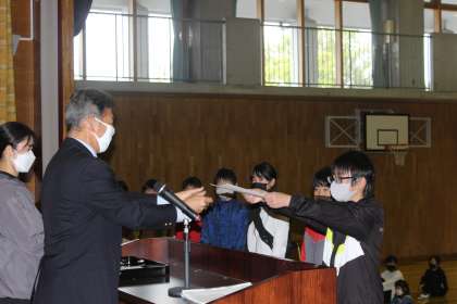 全校集会 公開日 2022/04/18 更新日 2022/04/18 お知らせ 本日は全校集会を開き、学級委員や各種委員会の任命と校長の話がありました。 コロナの心配がなくなったわけではないので、人と人との間隔を広めにとって行いました。