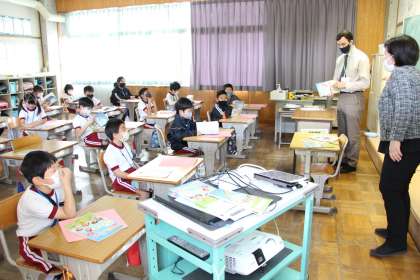 3年生の授業 公開日 2022/04/19 更新日 2022/04/19 お知らせ 3年生の授業の様子をお知らせします。外国語活動では、ALTと共に学びました。 図書館指導は、学校図書館司書から本の借り方や探し方について教えていただきました。話を聴くときの視線がいいですね!