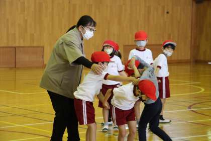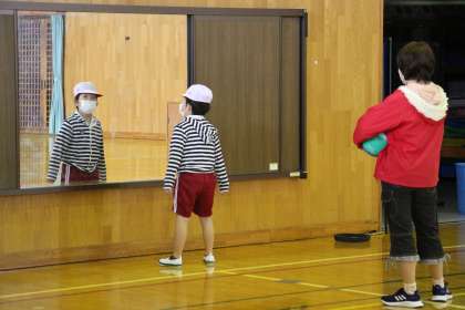体育の授業 公開日 2022/04/19 更新日 2022/04/19 お知らせ 1年生とあすなろ学級の体育の授業の様子をお知らせします。1年生は、体ほぐし運動です。輪を作った状態から、体をひねって体勢を変えて楽しみました。あすなろ学級は、鏡に映る自分を見ながら、様々な動きに挑戦しました。