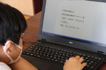 あすなろ学級は国語、くすのき学級は算数の様子です。写真は、6年生に向けた自作のアンケートですが、この結果をグラフにまとめる教材です。