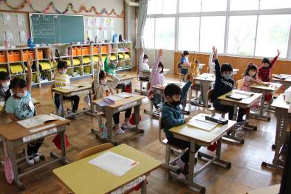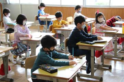 1年生の授業 公開日 2022/04/21 更新日 2022/04/21 お知らせ 1年生の授業の様子をお知らせします。初めのうちは、授業の受け方の基本や国語、算数が中心になります。 国語は、ひらがなの書きかたです、いい姿勢で、ていねいに書くことを教えています。算数は、ブロックを使って簡単な引き算をゲーム形式で学びました。左手と右手にいくつか分けてもち、右手のブロックを見せて、左手に隠れているブロックの数を当てました。