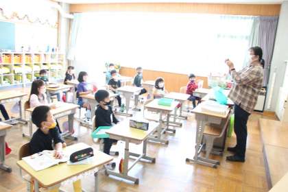 1年生の授業 公開日 2022/04/25 更新日 2022/04/25 お知らせ 1年生の授業の様子をお知らせします。担任が見つけてきた「四つ葉のクローバー」を紹介し、みんな真剣に楽しそうなまなざしで話を聴くことができました。このクローバーは、どのように使われるのでしょうか…。 また、国語の授業では「指さし音読」を行いました。低学年や単元の初めの頃は、読むところを指さしながらの音読は、とても有効です。