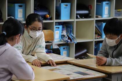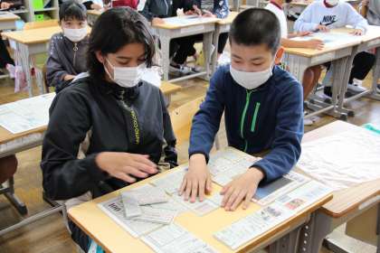 5・6年生図書館指導 公開日 2022/05/09 更新日 2022/05/09 お知らせ 本日は、学校図書館司書の来校日で、「新聞を使った図書館指導」をしてくれました。新聞のレイアウトの解説を、新聞組み立てゲームを用いて行いました。