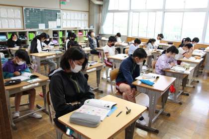 昨日の6年生の算数の授業の様子をお知らせします。中学校の数学を思わせる「X」を使っての計算です。○や□ではなく、文字式になるだけで、難しくなった気がします。