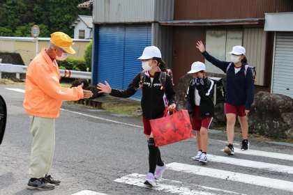 毎朝、子どもたちの通学路に立って交通指導をしてくださっているボランティアの方の様子をお知らせします。
