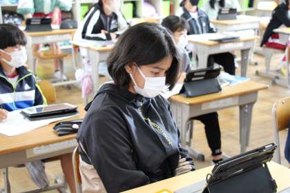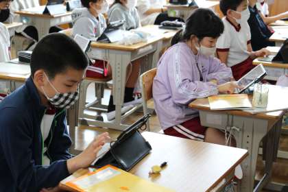 6年生の社会「国会」の授業についてお知らせします。各自がタブレットを使って調べたことを発表し合いました。
