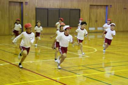 2年生の体育の授業の様子をお知らせします。どの年代でも2年生は走ることが好きで、長放課は鬼ごっこが定番です。ウォーミングアップのかけあしも気合が違います。