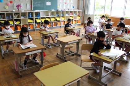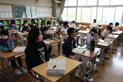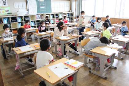 今日の各学年の授業の様子についてお知らせします。1年生は生活科で学級園の観察記録をまとめました。3年生、6年生は国語です。3年生はラッパになり切って発声し、みんなから拍手がわきました。