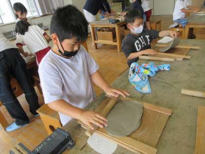 昨日の記事になりますが、2年生の陶芸作品作りの様子をお知らせします。2年生は、お皿を作りました。この後、どんな色を付けてどんな皿になるか楽しみです。