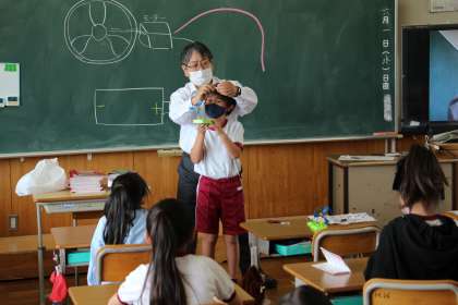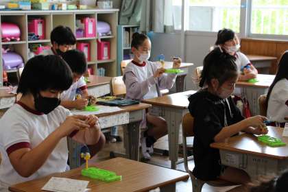4年生の理科「電池のはたらき」の授業の様子をお知らせします。電池のつなぎ方をキットを用いて学びました。風がどちら向きに吹くかどうかで確かめをしました。