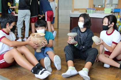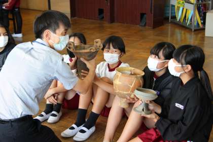 歴史的価値があるものを取り扱う時は、いつも以上に慎重で6年生らしさが表れていました。来週は、同じく郷土資料館の方を講師として校外学習があります。楽しみが尽きません。
