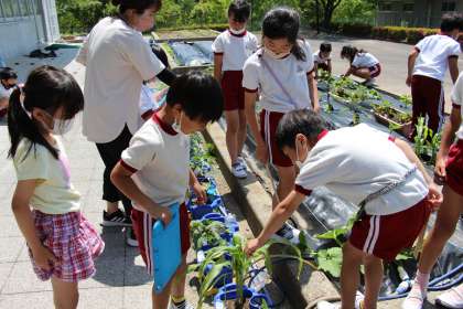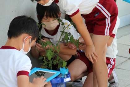 2年生野菜観察 公開日 2022/06/03 更新日 2022/06/03 お知らせ 2年生の野菜観察の様子をお知らせします。「ナスができたよ」「ミニトマトがなったよ」と、進捗状況を嬉しそうに教えてくれました。五感を使っていろいろな観察をしていました。