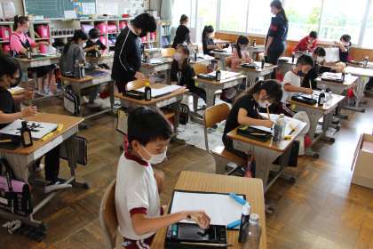 国語の授業 公開日 2022/06/06 更新日 2022/06/06 お知らせ 各学年の国語と書写の授業の様子をお知らせします。3・4年生の授業です。書写の授業をみていると、同じ字を書くにも、道具の違いによってここまで変わるのかと思います。心が形に表れますね。