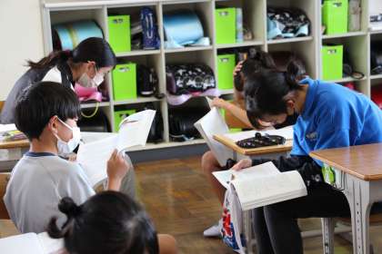 今日の様子(6/9) 公開日 2022/06/09 更新日 2022/06/09 お知らせ 今日の各学年の授業の様子をお知らせします。6年生は、国語の音読の様子です。自分で読んだり、友達と合わせて読んだりしました。2年生も国語の授業です。場面分けを色上質紙を使って行いました。