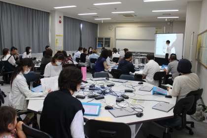 また、タブレットの使い方に不安のある保護者の方に、本校の情報化推進員が「保護者タブレット講習会」を行いました。