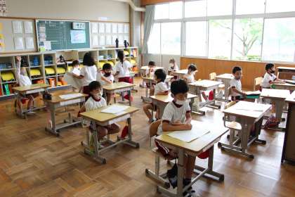 今日の各学年の授業の様子をお知らせします。あすなろ学級は理科、くすのき学級は算数、1年生は朝の会の様子です。