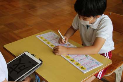 あすくす学級の授業 公開日 2022/06/17 更新日 2022/06/17 お知らせ あすくす学級の授業の様子をお知らせします。くすのき学級では、「ザリガニ日記」をつけていますが、もっと多くのザリガニの観察をしたいと考え、ザリガニ取りに出かけました。ほんのわずかの時間でもきっちり捕まえました。そのうちの1匹は、脱皮途中で抜け殻とやわらかい体を、視覚、触覚で確かめました。 あすなろ学級は漢字練習です。ドリルとタブレットを併用して学習しました。