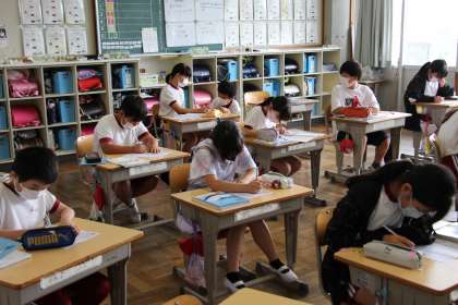 5年生の授業 公開日 2022/06/17 更新日 2022/06/17 お知らせ 本日の5年生の授業の様子をお知らせします。算数は「小数のわり算」の復習です。得意な子は自分の力でどんどん問題を解く、不安がある子は、いつでも教えてもらえるフォーメーションを組んで行っていました。 水泳の授業は、各自の泳力を確認し、泳力にあったメニューを行いました。写真は、基本コースの第一歩、バタ足練習です。
