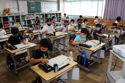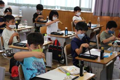 3年生書写 公開日 2022/06/20 更新日 2022/06/20 お知らせ 3年生の書写の授業の様子についてお知らせします。初めての毛筆で字を書く授業でした。まずは筆おろしから始め、筆の持ち方を確認後、基本となる線を書きました。 冬には書き初め大会があり、けっこう難しい字を書くことになります。とめや払いの筆遣いをしっかりマスターして、美しい字を書いてほしいと思います。