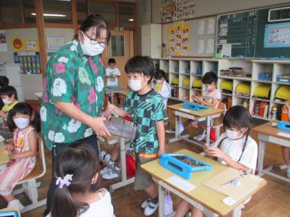 あすなろ学級の活動 公開日 2022/06/22 更新日 2022/06/22 お知らせ あすなろ学級の活動の様子についてお知らせします。 昨日の話題になりますが、ブロックの交流会があり、〇×クイズを行いました。その他、多くの交流があり、楽しく過ごすことができました。 次に、生活の授業で作ったゴムパッチンを、1年生にプレゼントした様子です。みんな喜んでくれました。 最後は今週末に校外学習に出かける消防署とエコットの事前学習の様子です。