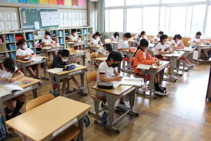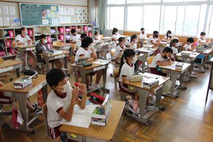 4年生は理科、5年生は算数の授業の様子です。自分で考える場面、友達と話し合う場面、学級全体で考える場面を通して、深い学びにつなげています。