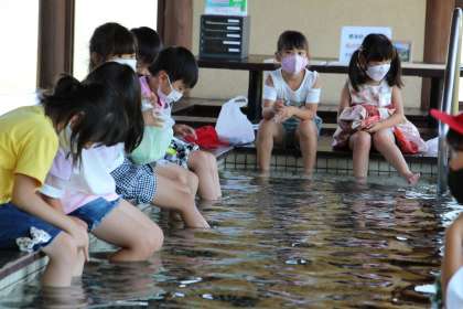 1年生足湯 公開日 2022/06/29 更新日 2022/06/29 お知らせ 1年生が足湯体験に出かけました。事情により、少しの間休業していた足湯でしたが、1年生をお迎えするように、本日10時より再開したばかりです。足湯体験だけでなく、足湯の歴史も学びました。
