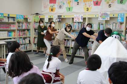 子どもたちは、国語で学習しているので、次に出てくる登場人物を教えてくれ、場が一体化されていました。