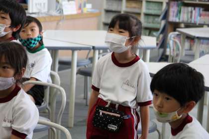 1年生の読み聞かせ劇「大きなかぶ」の様子をお知らせします。それぞれ登場人物に扮した教職員と、学校図書館司書の読み聞かせのコラボでした。
