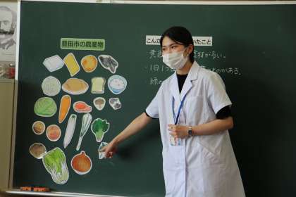 4年生食育指導 公開日 2022/07/06 更新日 2022/07/06 お知らせ 昨日の記事になりますが、4年生の食育指導の様子についてお知らせします。 栄養職員を講師にお招きして4年生が「豊田市の食材」をテーマに学びました。現在、多くの豊田市産の食材が給食に使われていることを教わり、その理由についても考えました。