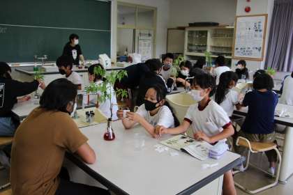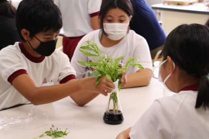 6年生理科 公開日 2022/07/07 更新日 2022/07/07 お知らせ 6年生の理科「植物の体のつくりと水の通り道」の授業の様子をお知らせします。 ホウセンカに色水を吸わせ、その通り道を観察することで、植物の体のつくりを学ぶ単元です。理科といえば、すぐに結果が出るイメージですが、すぐに結果が出ない実験(観察)も大切です。