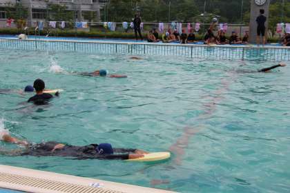 中学年は浅いプールと深いプールの両方を使います。ある程度の泳力が身に付いたら深いプールでの学習を行うようにしています。本日も、無事クリアし、深いプールデビューの児童が誕生しました。