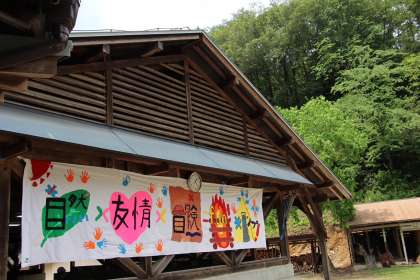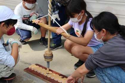 野外炊飯に向けて、薪割りや火おこしなど行いました。電気やガスがないとこうなるのですね。