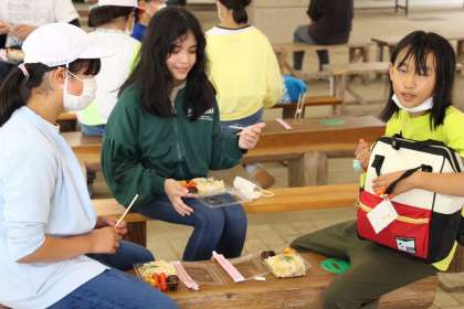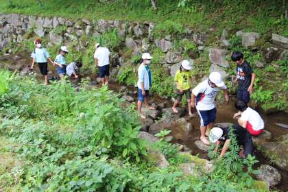 お昼の弁当を食べた後、少し自由時間があったので、全員が川遊びに夢中でした。きちんと時間を守って行動しているので、こういった自由時間を楽しめました!