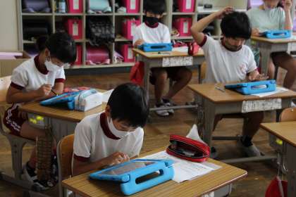 4年生もキュビナ学習を行いました。各自のペースに合わせて学習ができるので、落ち着いて取り組めそうです。