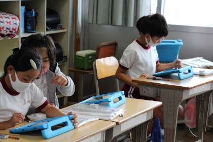 3年生国語 公開日 2022/07/15 更新日 2022/07/15 お知らせ 3年生の国語「暑中見舞いを書こう」の授業の様子をお知らせします。 タブレットを使ってどんなデザインがいいかを考えました。自分のデザインを友達に見てもらい、アドバイスをもらっていました。