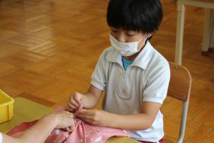 あすなろ学級は、昨日に引き続き風呂敷を使って縛り方、結び方の練習をしました。一日でずいぶん上手になっており、びっくりしました。