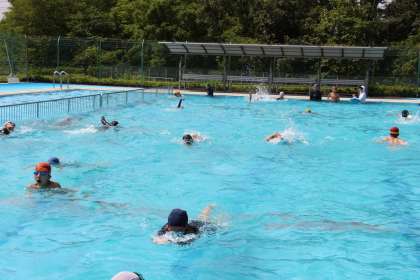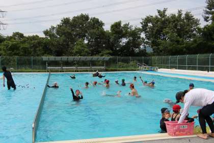 高学年水泳 公開日 2022/07/20 更新日 2022/07/20 お知らせ 5・6年生の水泳の授業の様子をお知らせします。 昨日延期した水泳の最後の授業を行いました。一日待ったかいがあって、天候にも恵まれ、気持ちよく泳ぐことができました。 いのちを守るための「浮いて待て」や、泳法をきわめて速く泳ぐ練習、お楽しみ等、充実した時間を送ることができました。