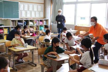 本日も、拠点校指導教員を中心に授業を行いました。国語と算数の授業の様子です。「リットル」や「デシリットル」の表し方や変換について学びました。