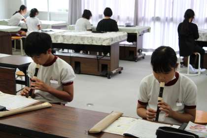 6年生の様子 公開日 2022/09/01 更新日 2022/09/01 お知らせ 6年生の授業の様子をお知らせします。夏休みの振り返りの後、早速音楽の授業に取り組みました。 まだ、コロナの心配があるので、音をタブレットに録音し、みんなで共有しました。また、音楽室での演奏も距離を置いて、みんなが外側を見ながら行っています。