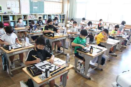 書写は、たくさん墨をつけてダイナミックに書く子が多い学級です。きっと躍動感のあるいい作品ができると思います。