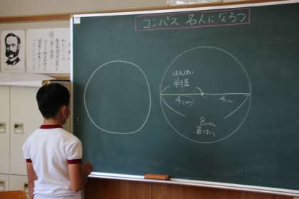 あすくす学級の授業 公開日 2022/09/06 更新日 2022/09/06 お知らせ あすくす学級の授業の様子をお知らせします。あすなろ学級は国語で、しっかりとした口調で音読をしました。 くすのき学級は算数です。コンパスを使って円を描き、問題に答える授業でした。私の、算数(数学)の先生は、「フリーハンドできれいに円が描けることが大切な技能」という話に乗っかって、フリーハンドで円を描いてみました。思いのほかきれいに描くことができ、びっくりでした。