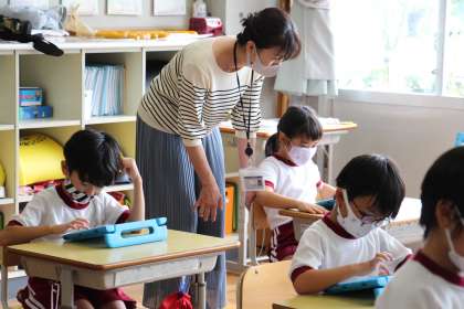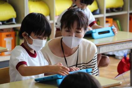 ICT支援員に教えてもらう場面も多くありましたが、授業の終わり頃には「できたよ、見て見て!」という子が増え、子どもたちの適応能力に脱帽でした。