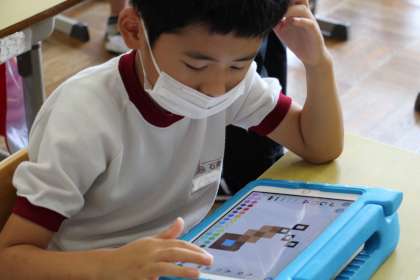 本日は、ICT支援員の来校日でした。1年生は、プログラミング学習として「スクラッチジュニア」を行いました。