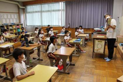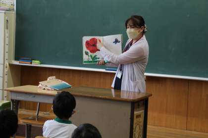 お話出てこい(読み聞かせ) 公開日 2022/09/08 更新日 2022/09/08 お知らせ 本日は、地域ボランティアの方による低学年の読み聞かせがありました。子どもたちは、読み聞かせが大好きです。絵本に食い入りように見つめながら、話を聴いていました。 お時間が許せば、お家の方からも読み聞かせを行っていただくと、子どもたちは喜ぶと思います。