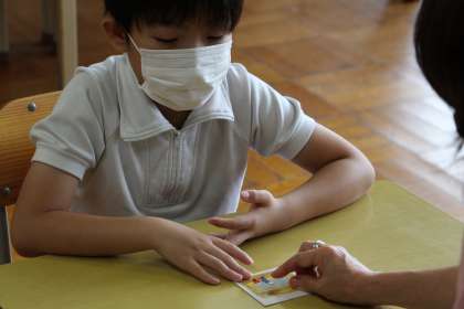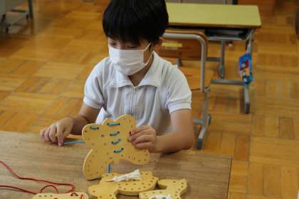 あすくす学級の授業 公開日 2022/09/08 更新日 2022/09/08 お知らせ あすくす学級の授業の様子をお知らせします。 あすなろ学級は、カードを使ってカードの状況を説明する学習でした。2枚目の写真は作業です。ひもを使って手先の器用さを磨きました。 くすのき学級は、「自分の長所を見つけよう」の学習です。自分を項目ごとに客観視しながら、自分強味探しをしました。