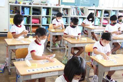 3年生算数 公開日 2022/09/13 更新日 2022/09/13 お知らせ 3年生の算数「あまりのある割り算」の授業の様子をお知らせします。 教科書等の共通の問題ではなく、一人一人への個別問題として、カードを使って引いた数2枚(2桁)÷1枚(1桁)の問題に挑戦しました。 どんどんカードを引いて、より多くの問題に挑みたかったのですが、カードの取り扱いに慣れていないため、思った以上にカード整理に時間がかかってしまいました。