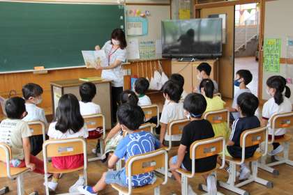 本日は、いしぼら(読み聞かせ)さんにご来校いただき、全校で読み聞かせを行いました。食い入るような子どもの様子が印象的でした。