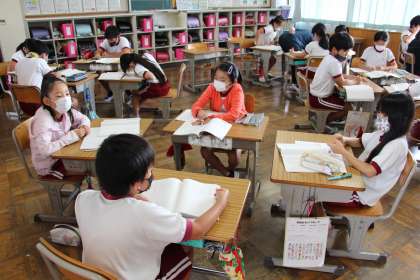 4年生国語 公開日 2022/09/16 更新日 2022/09/16 お知らせ 4年生の国語「ふしぎ」の授業の様子をお知らせします。詩の技法や情景をグループで話し合いながら、考えました。 金子みすゞさんの詩はメディアでもよく取り上げられるし、私も全校集会で紹介したこともあります。いい詩が多いので、じっくり味わってほしいと思います。